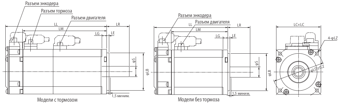 - различные исполнения, отличающиеся конструкцией вала, наличием тормоза и уплотнения;